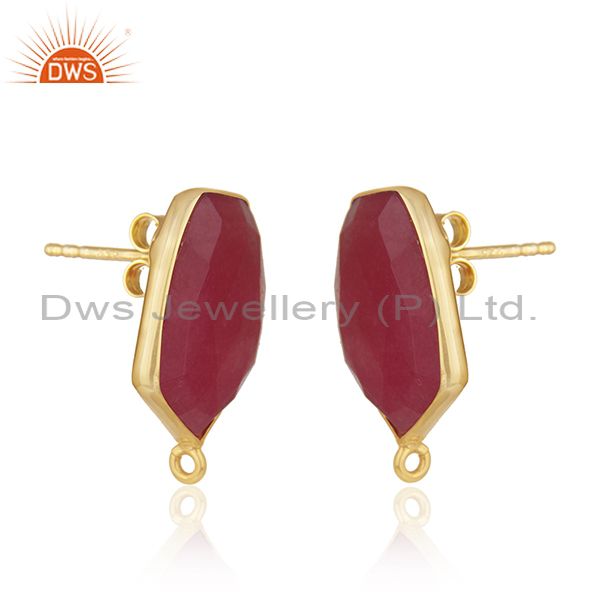 92.5 Silver Yellow Gold Plated Red Aventurine Gemstone Stud Earring Findings