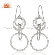 925 Solid Sterling Silver Hammered Multi Circle Design Dangle Earrings