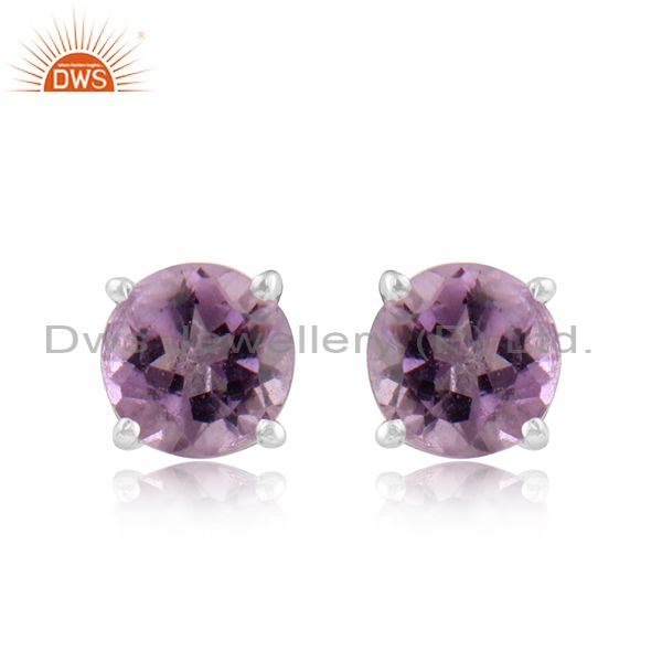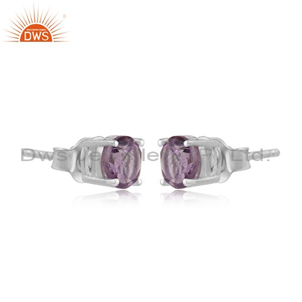 925 Sterling Fine Silver Amethyst Gemstone Tiny Stud Earrings