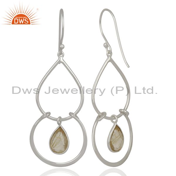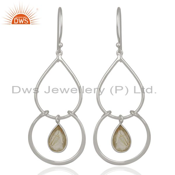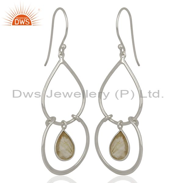925 Sterling Fine Silver Handmade Goledn Rutile Gemstone Earrings
