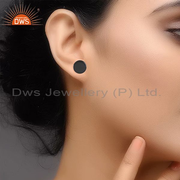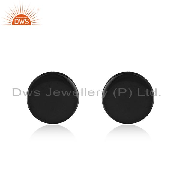 925 Sterling Plain Silver Black Rhodium Plated Stud Earrings Supplier