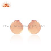 925 Sterling Plain Silver Rose Gold Plated Handmade Round Earrings