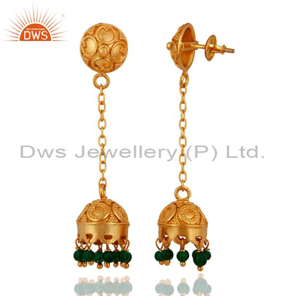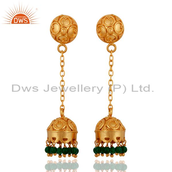 925 Sterling Silver 18K Gold Plated Green Onyx Designer Dangle Earrings