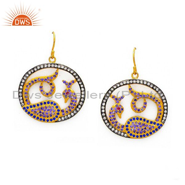 925 Sterling Silver 22K Gold Plated Amethyst Dangle Earrings Handmade Cz Jewelry