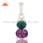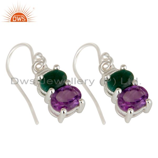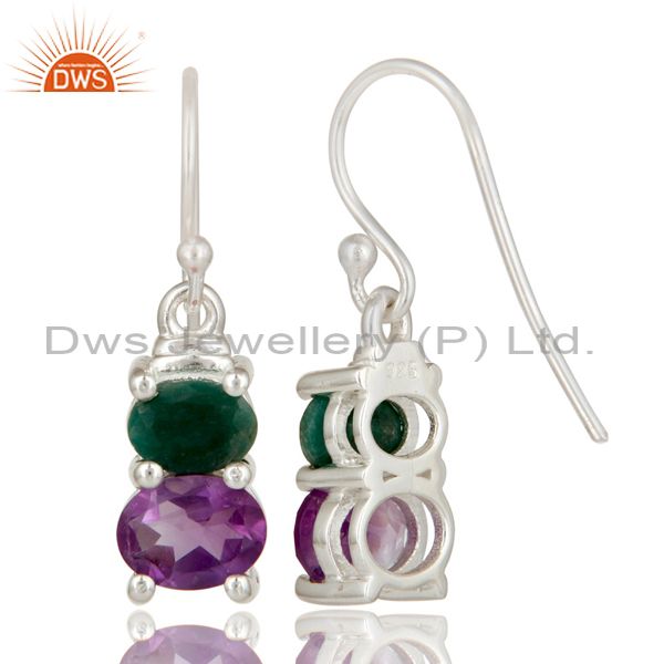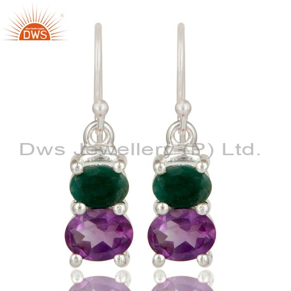 925 Sterling Silver Amethyst And Emerald Prong Set Gemstone Dangle Earrings