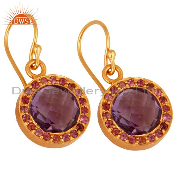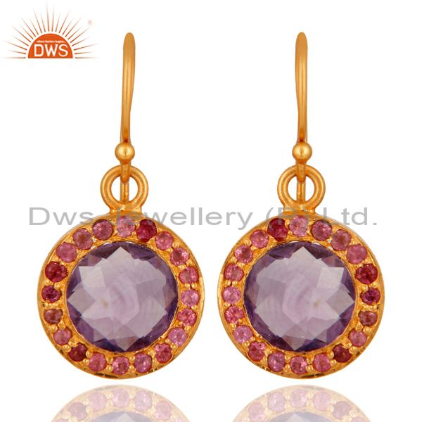 925 Sterling Silver Amethyst Gemstone Dangle Earring With 18K Gold Plated