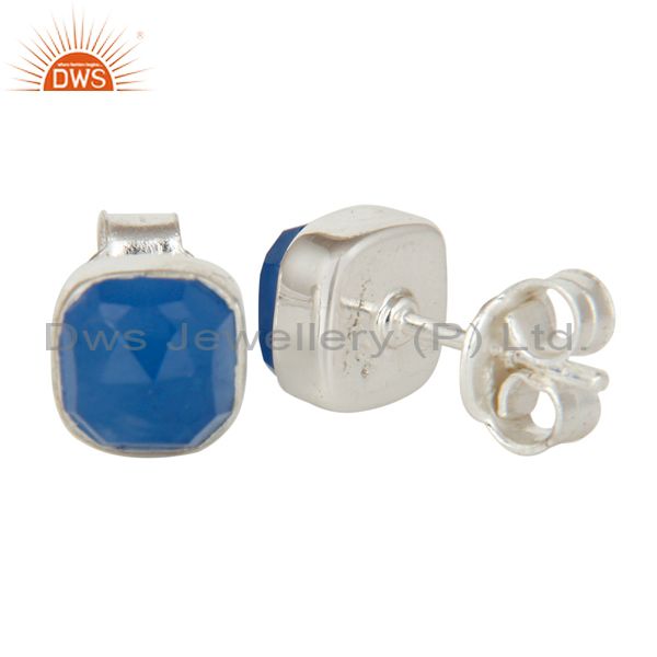 925 Sterling Silver Aqua Blue Chalcedony Gemstone Stud Earrings