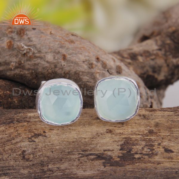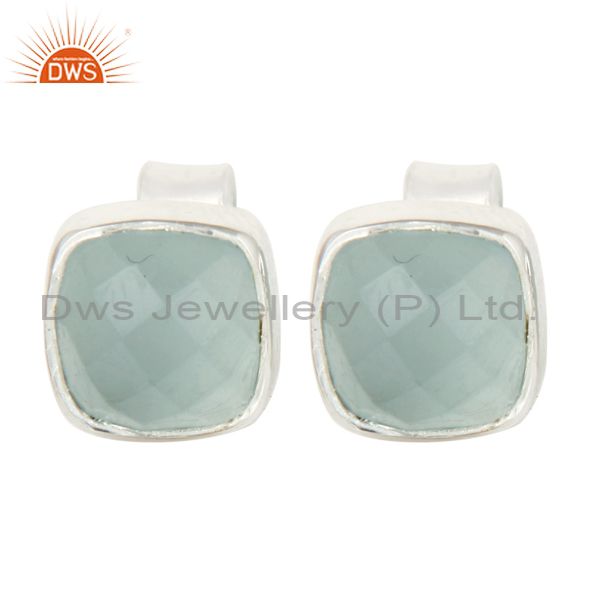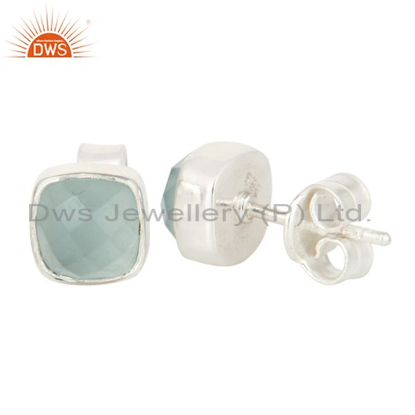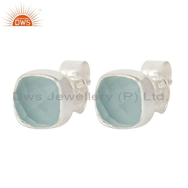 925 Sterling Silver Aqua Glass Cushion Cut Womens Fashion Stud Earrings