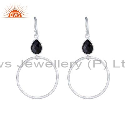 925 Sterling Silver Black Onyx Gemstone Circle Dangle Earrings