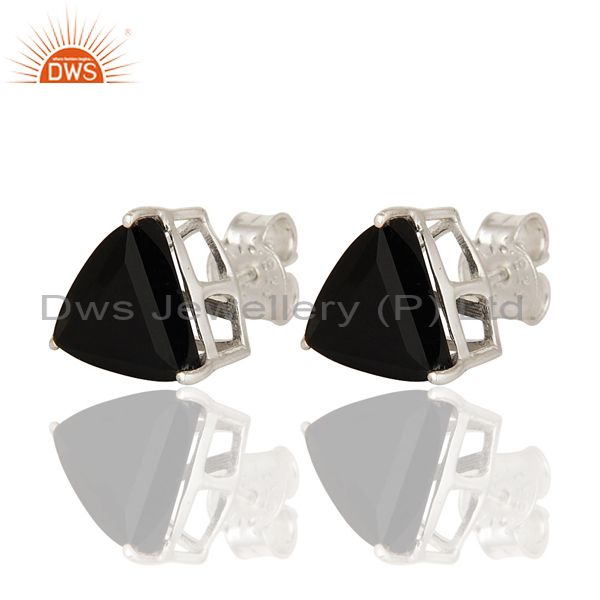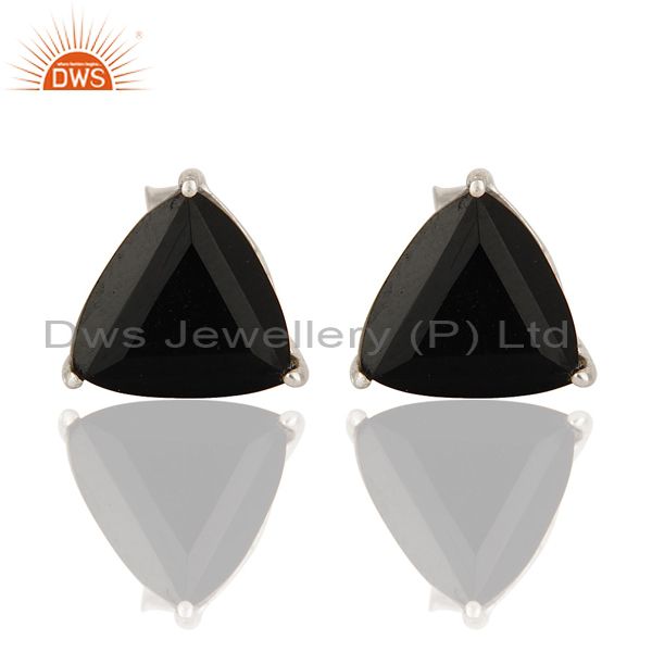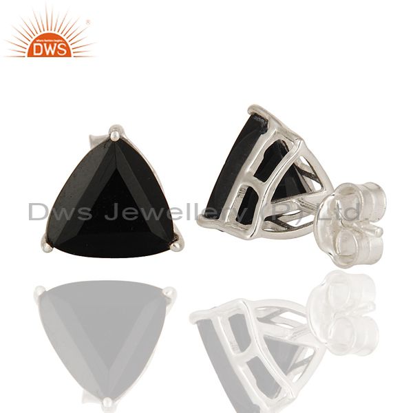 925 Sterling Silver Black Onyx Gemstone Trillion Cut Womens Stud Earrings