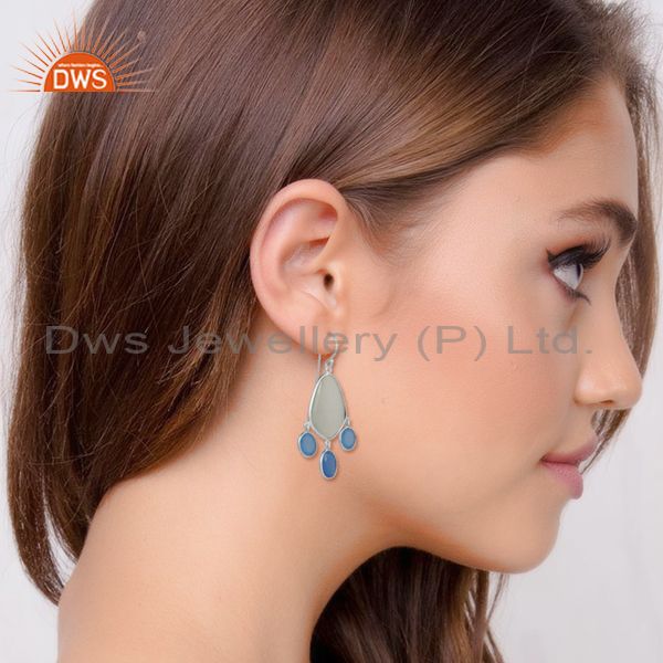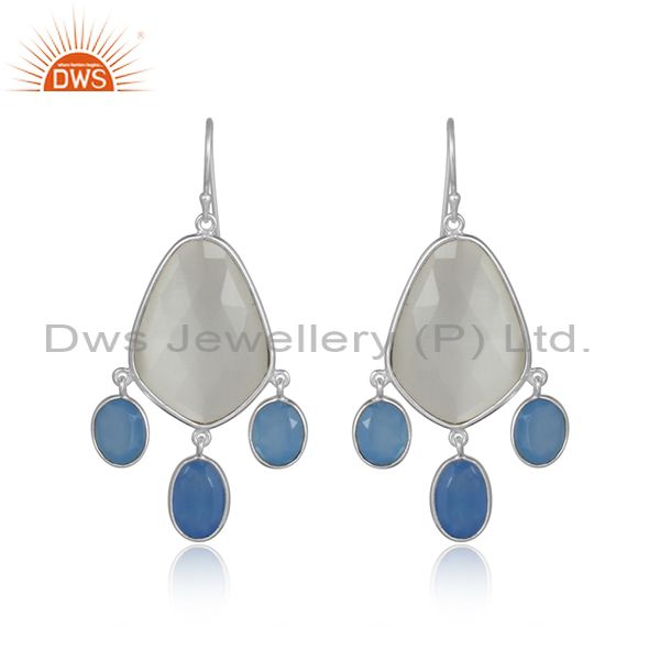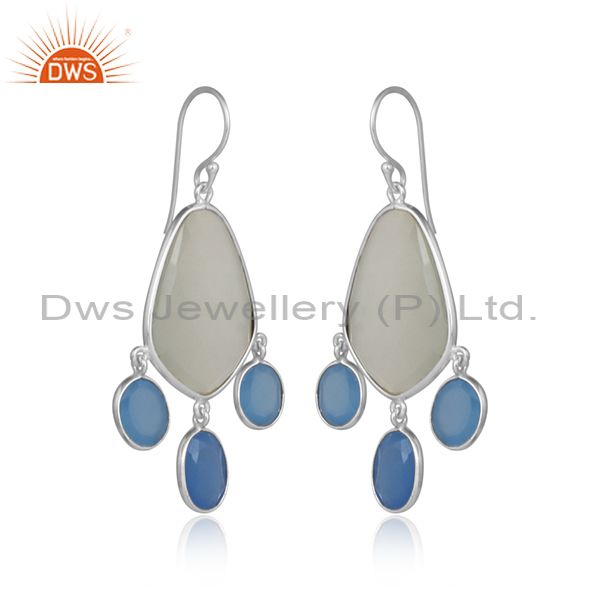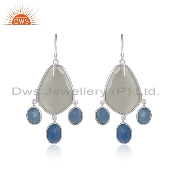 925 Sterling Silver Blue Chalcedony And White Moonstone Chandelier Earrings