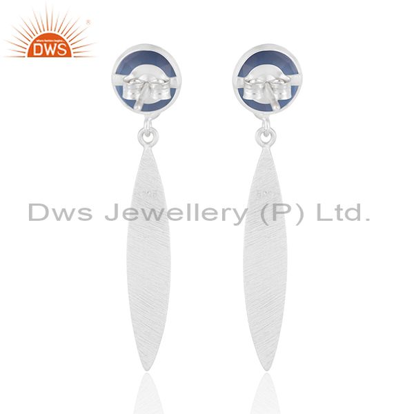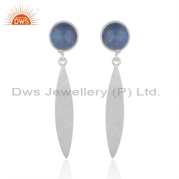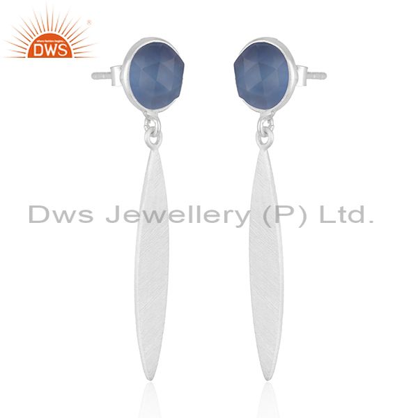 925 Sterling Silver Blue Chalcedony Gemstone Dangle Earrings Jewelry