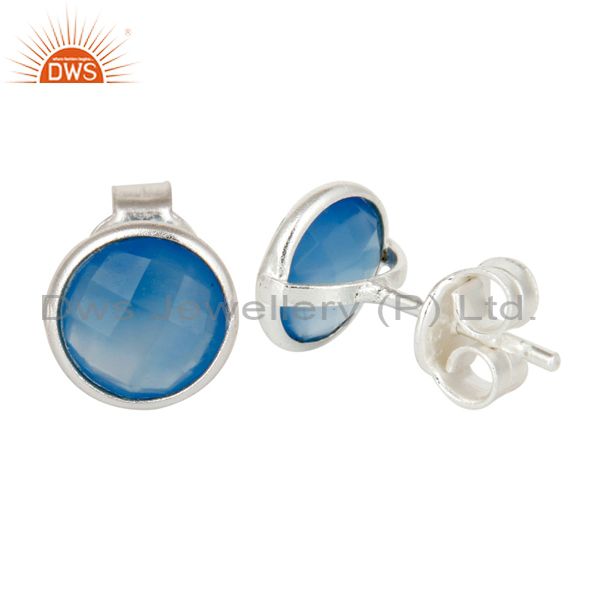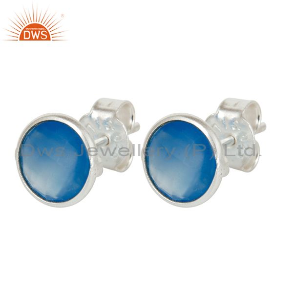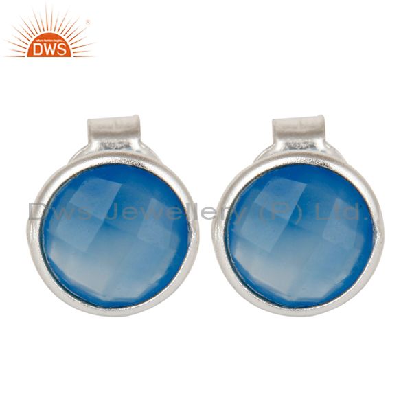 925 Sterling Silver Blue Chalcedony Gemstone Stud Earrings