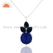 925 Sterling Silver Blue Corundum And Blue Aventurine Cluster Post Stud Earrings