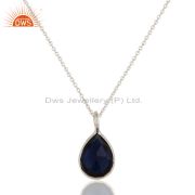 925 Sterling Silver Blue Corundum Bezel Setting Drop Earrings