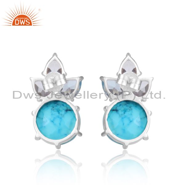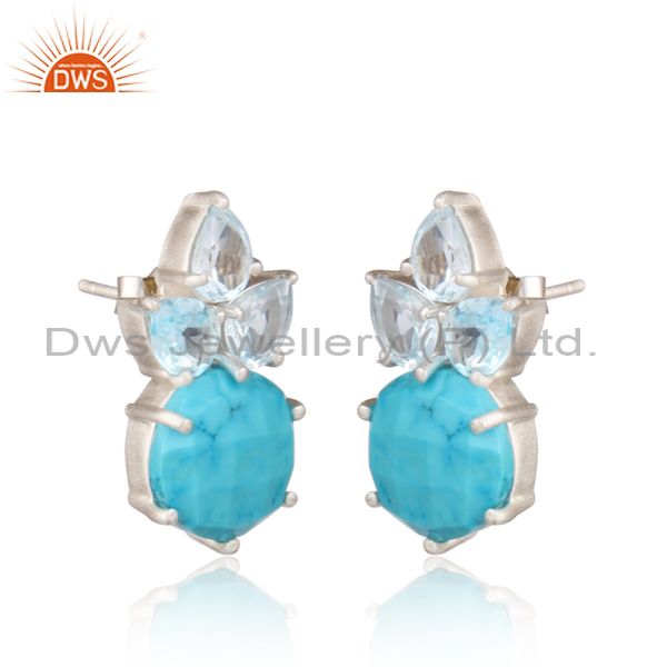 925 Sterling Silver Blue Topaz And Turquoise Gemstone Cluster Stud Earrings