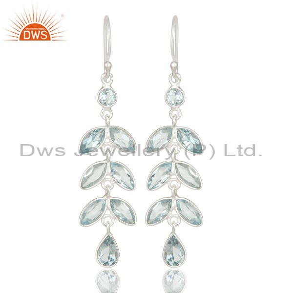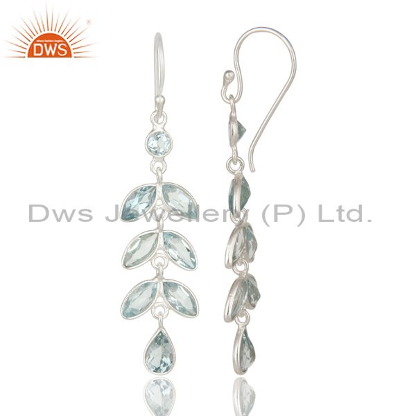 925 Sterling Silver Blue Topaz Gemstone Bezel Set Leaf Dangle Earrings