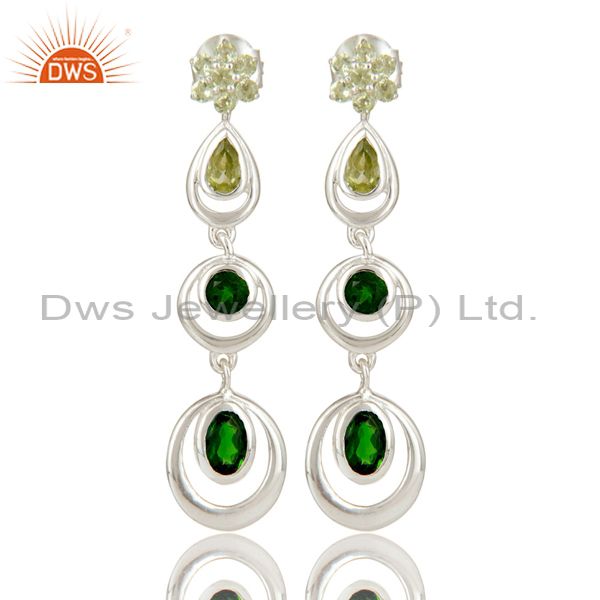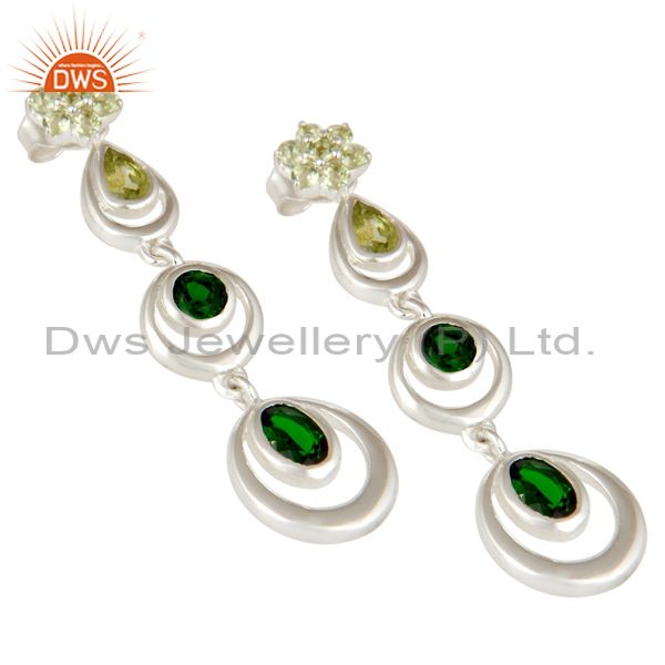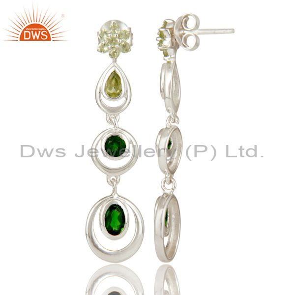 925 Sterling Silver Chrome Diopsite and Peridot Circle Dangle Earrings For Women