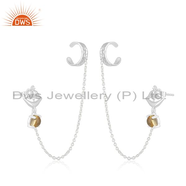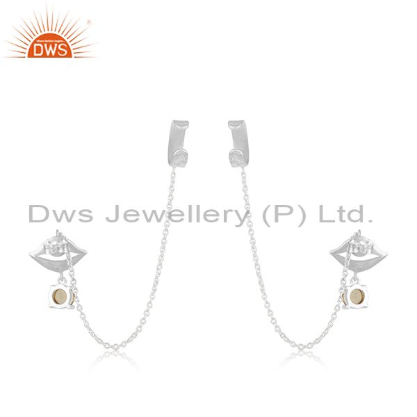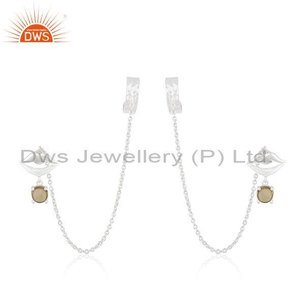 92.5 Sterling Silver Citrine Birthstone Lip Design Ear Cuff Earrings Wholesale