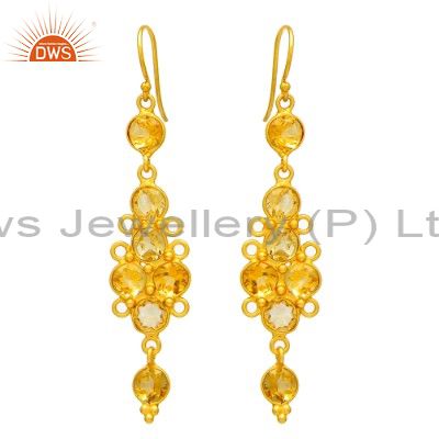925 Sterling Silver Citrine Gemstone Dangle Earrings With 18K Gold Plated