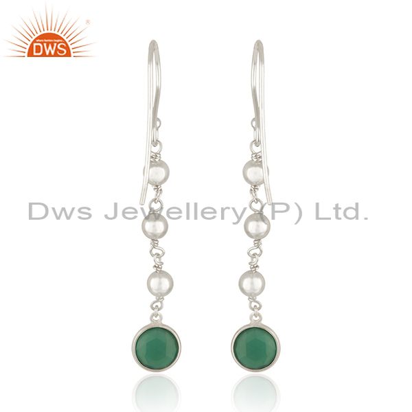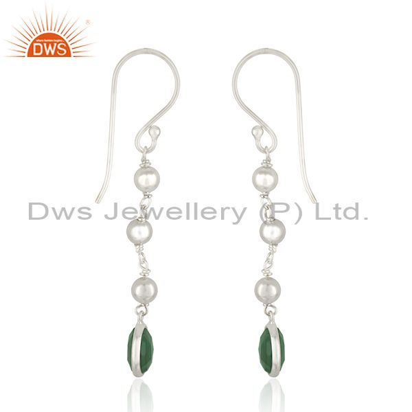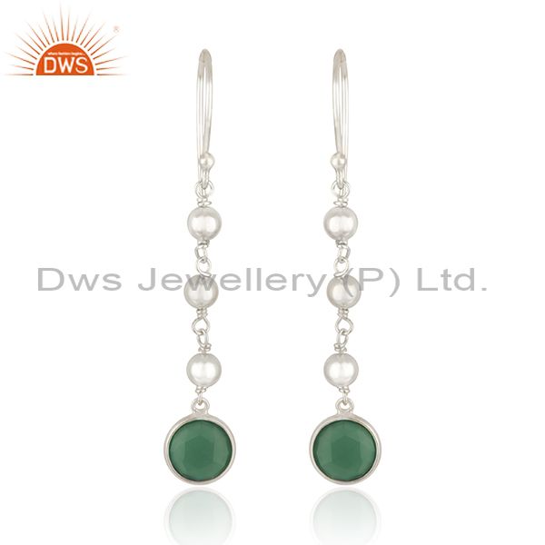 925 Sterling Silver Designer Silver Green Onyx Earrings Jewelry