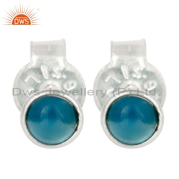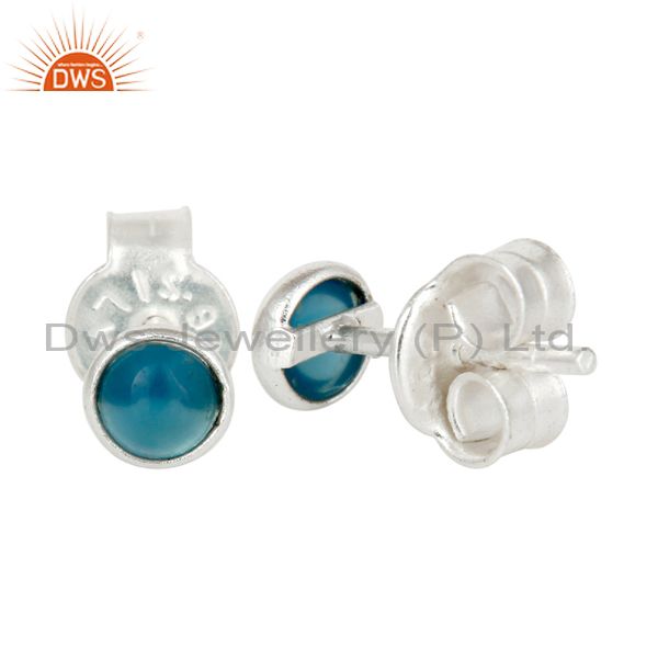 925 Sterling Silver Dyed Blue Chalcedony Gemstone Stud Earrings