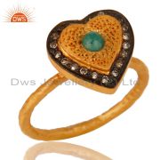 925 Sterling Silver Emerald And Diamond Accent Heart Design Earrings With 18K