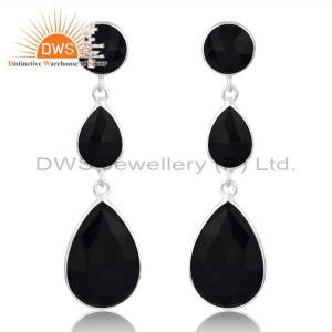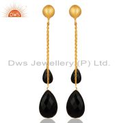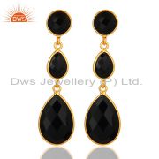 925 Sterling Silver Faceted Gold Plated Black Onyx Gemstone Drop Earrings