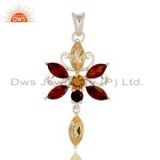 925 Sterling Silver Garnet And Citrine Gemstone Earrings