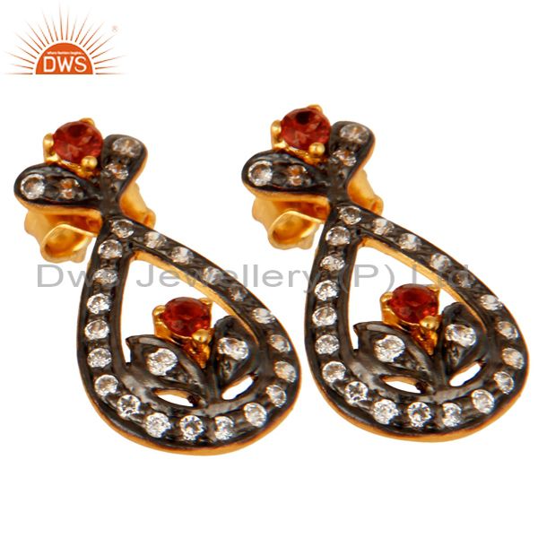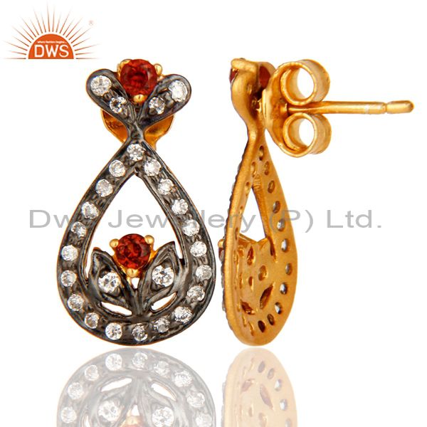 925 Sterling Silver Garnet And White Zircon Stud Earrings With Gold Plated