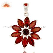 925 Sterling Silver Garnet Marquise Cut Gemstone Cluster Flower Dangle Earrings