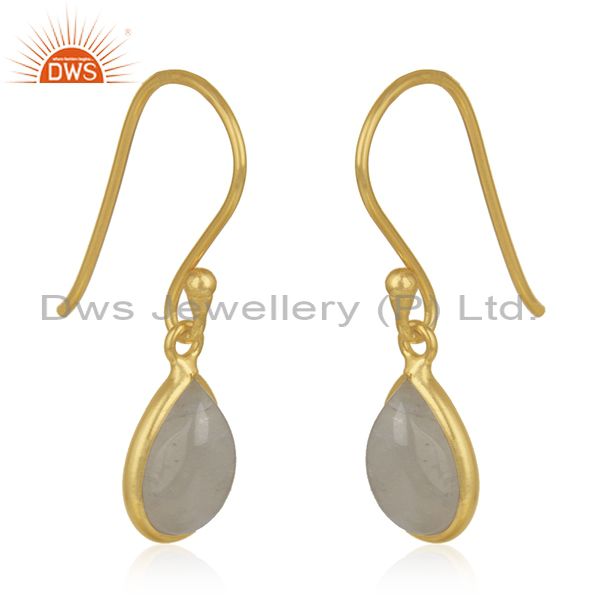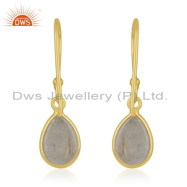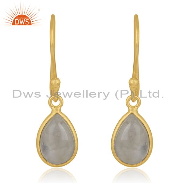 92.5 Sterling Silver Gold Plated Rainbow Moonstone Drop Earring Manufacturer