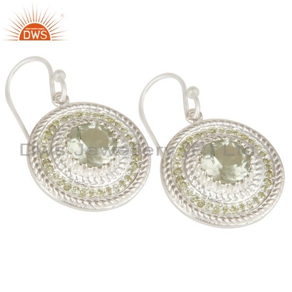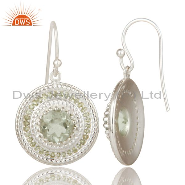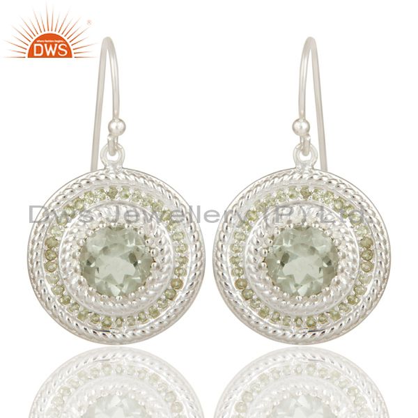 925 Sterling Silver Green Amethyst and Peridot Gemstone Disc Dangle Earrings