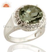 925 Sterling Silver Green Amethyst Gemstone Dangle Earrings With White Topaz
