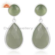 925 Sterling Silver Green Chalcedony Faceted Triple Gemstone Dangle Earrings