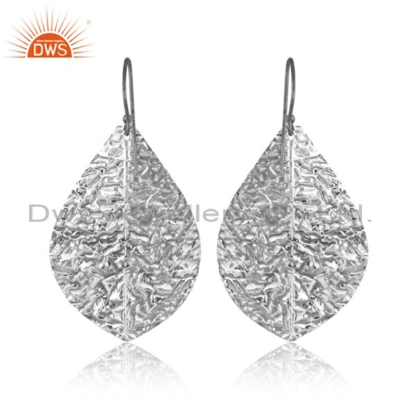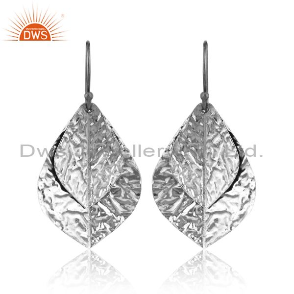 925 Sterling Silver Handmade Oxidized Leaf Textured Earrings