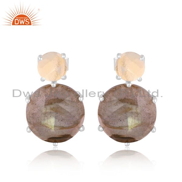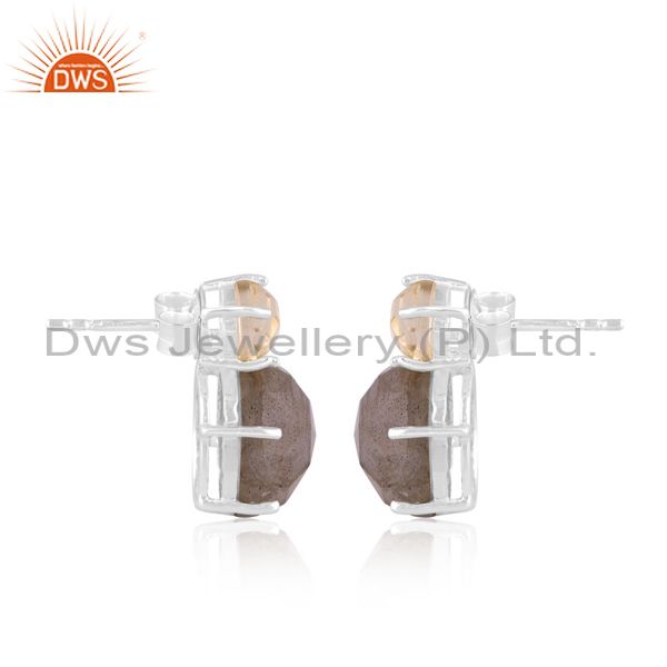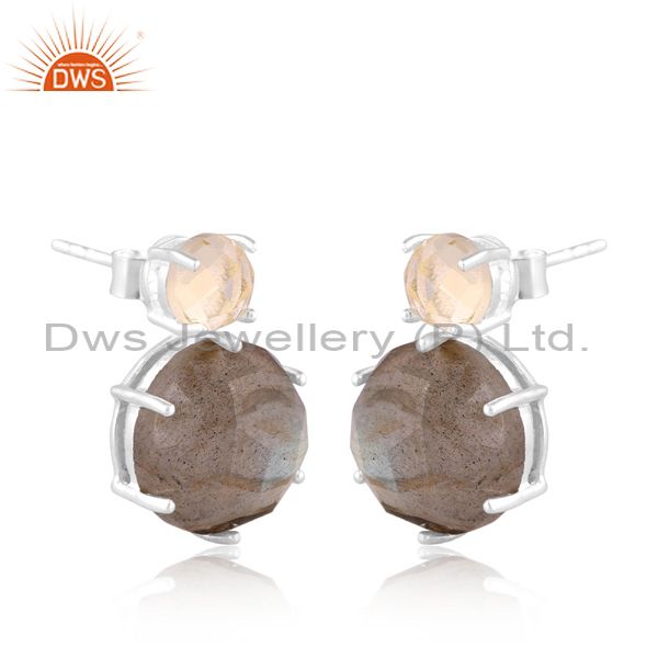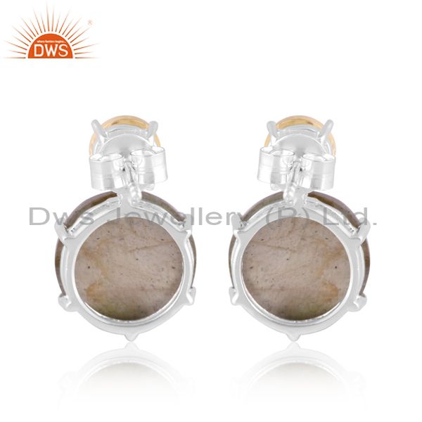 925 Sterling Silver Labradorite And Lemon Topaz Gemstone Dangle Earrings