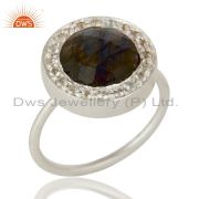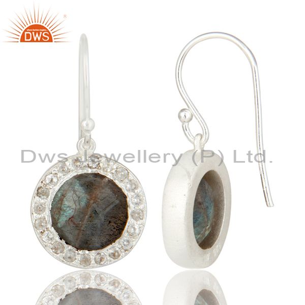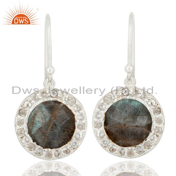 925 Sterling Silver Labradorite And White Topaz Halo Style Dangle Earrings