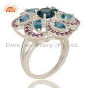 925 Sterling Silver London Blue Topaz And Amethyst Flower Dangle Earrings