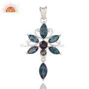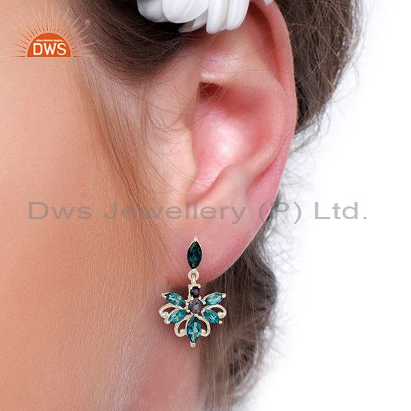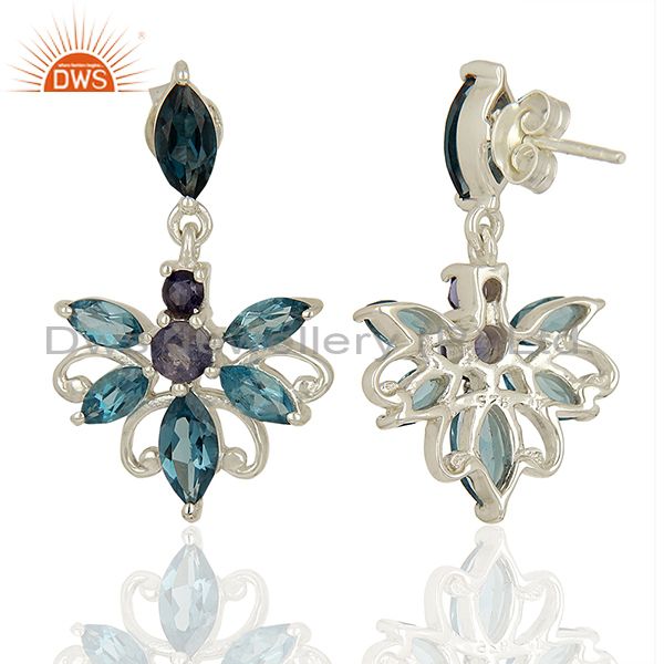 925 Sterling Silver London Blue Topaz And Iolite Gemstone Dangle Stud Earrings