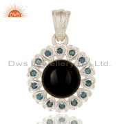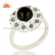 925 Sterling Silver Natural Black Onyx And Blue Topaz Gemstone Dangle Earrings