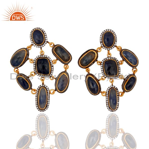 925 Sterling Silver Natural Blue Sapphire Gemstone Earring With Cubic Zirconia