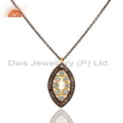 925 Sterling Silver Natural Blue Topaz Gemstone Pave Diamond Dangle Earrings