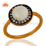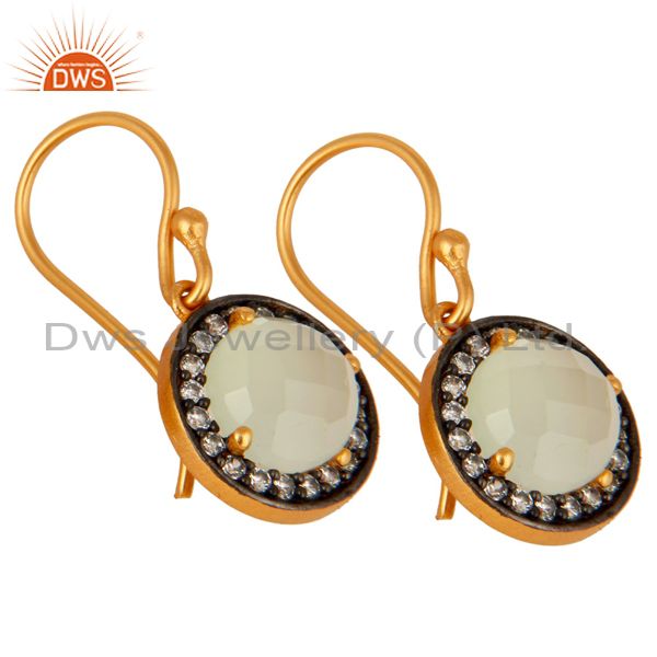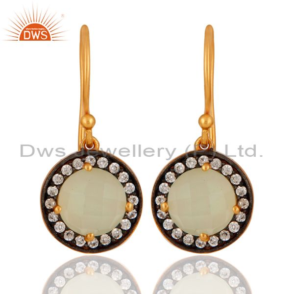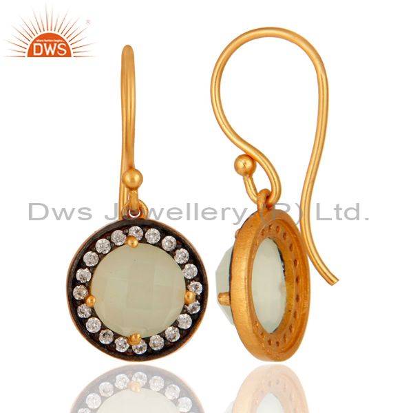 925 Sterling Silver Natural Chalcedony Gemstone & Cz Earrings With Gold Plated