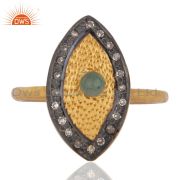 .925 Sterling Silver Natural Emerald Pave White Diamond Post Stud Earrings