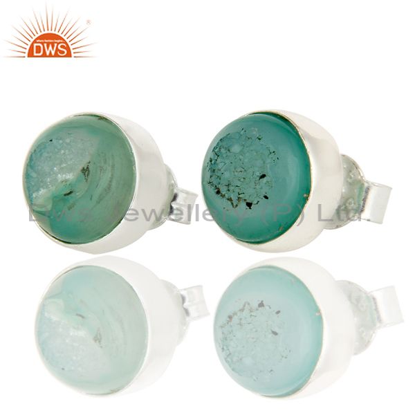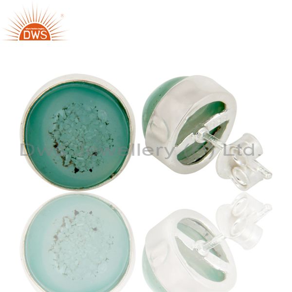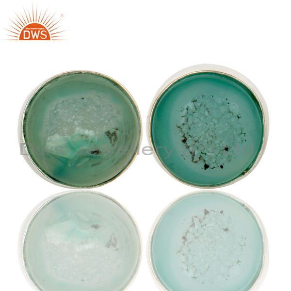 925 Sterling Silver Natural Green Druzy Bezel-Set Stud Earrings For Women