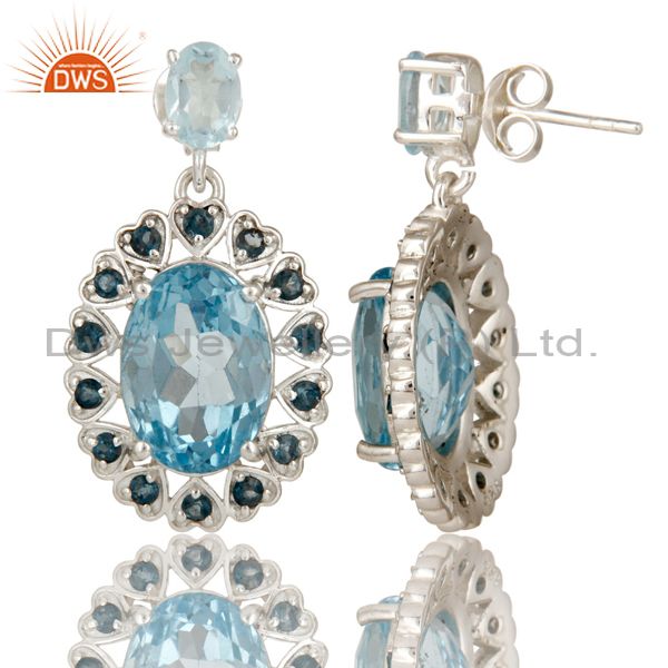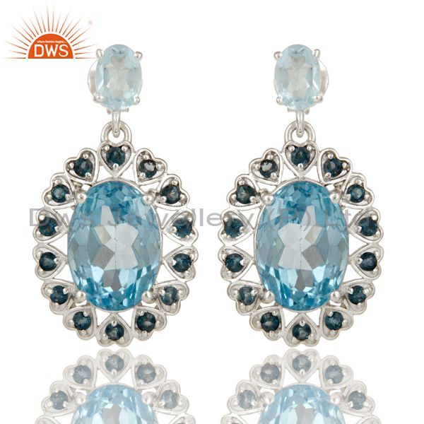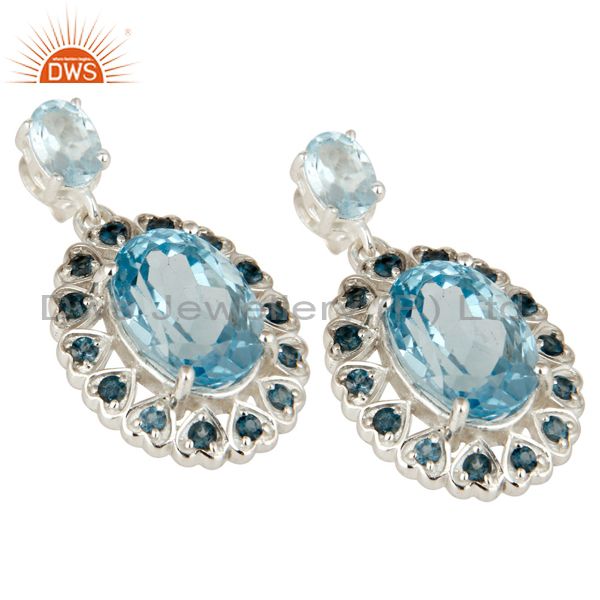 925 Sterling Silver Natural London Blue Topaz Fine Gemstone Dangle Earrings