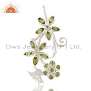 925 Sterling Silver Natural Peridot Gemstone Flower Designer Dangle Earrings