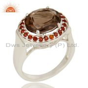 925 Sterling Silver Natural Smoky Quartz And Garnet Gemstone Prong Set Earrings