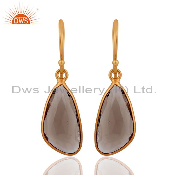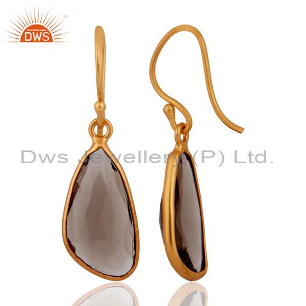 925 Sterling Silver Natural Smoky Quartz Hook Earring With Gold Plated Jewelry